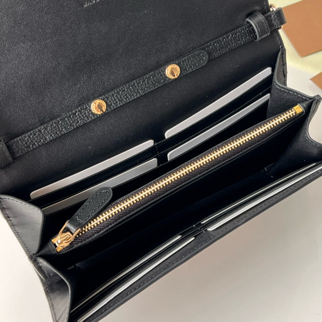 Burberry Henley Check Canvas & Black Leather Wallet-On-Chain Bag